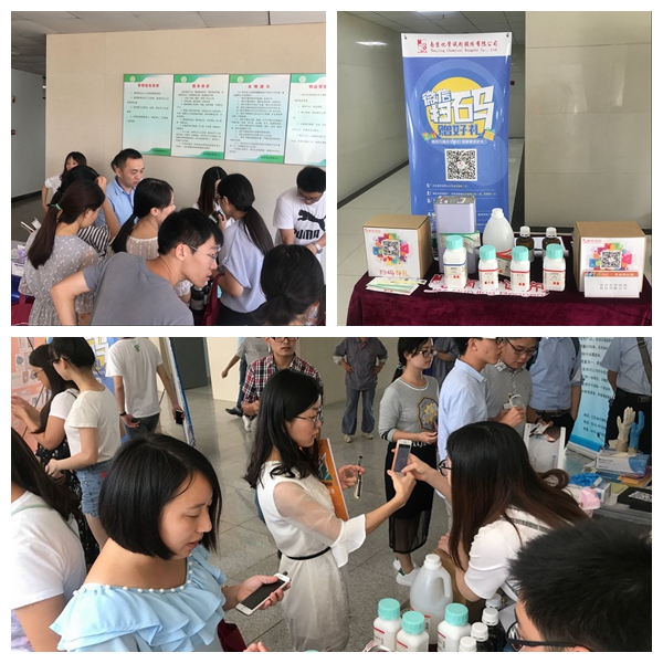 展出活動得到中國藥科大學(xué)校方大力支持,重點面向大學(xué)研究課題組和實驗室,先后在江寧和玄武門兩個校區(qū)進(jìn)行?;顒蝇F(xiàn)場吸引了眾多師生,其中不乏老顧客和聞訊前來的新朋友,大家圍著展臺參觀包裝樣品,詢問產(chǎn)品功能,了解訂貨方式,紛紛拿出手機(jī)關(guān)注“南京試劑”商城。通過現(xiàn)場互動交流和采訪調(diào)研,服務(wù)團(tuán)隊向師生們了解目前實驗室對試劑和藥輔的需求、管理上的難題以及需要企業(yè)給予的服務(wù)支持,為公司進(jìn)一步強(qiáng)化高校實驗室對接,提供更貼切的產(chǎn)品,優(yōu)化物流和技術(shù)服務(wù),獲得第一手信息。