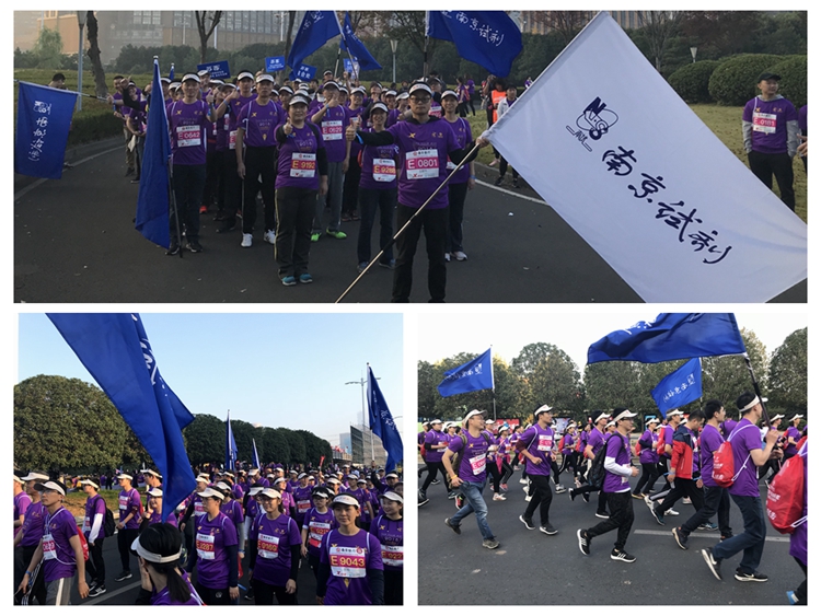 深秋的清晨,泛著微寒,卻擋不住南試伙伴兒們的熱情。6時(shí)40許,南京試劑的伙伴兒們陸續(xù)抵達(dá)賽場(chǎng),興致昂揚(yáng),激情滿懷,風(fēng)采奕奕,大家進(jìn)行合影留念和賽前熱身。7時(shí)30分,比賽正式開(kāi)始。28000人排隊(duì)出發(fā),場(chǎng)面蔚然壯觀。參加“迷你健康跑”的南試伙伴兒,排成整齊的隊(duì)伍,齊頭并進(jìn),一路同行,在氣勢(shì)恢宏的紫色大潮之中,呈現(xiàn)出一道靚麗的風(fēng)景。