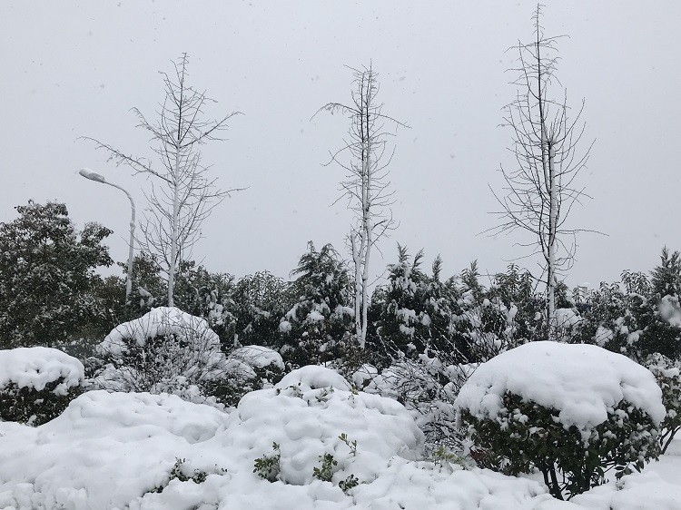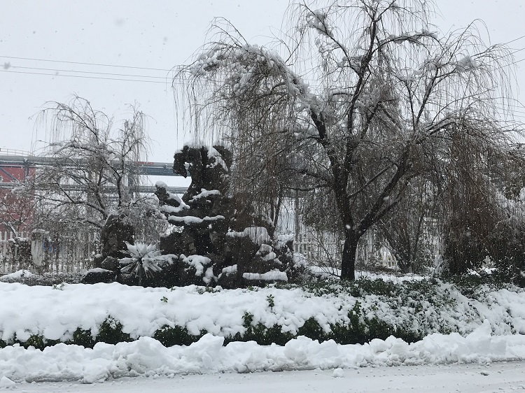 化雪乘風(fēng)冬漸遠(yuǎn),試水探花春意濃。一場初雪,既展示了江南精美別致的風(fēng)景,又彰顯出新時期南試員工團結(jié)協(xié)作、克服困難的精神斗志和奮發(fā)向上的朝氣與活力。