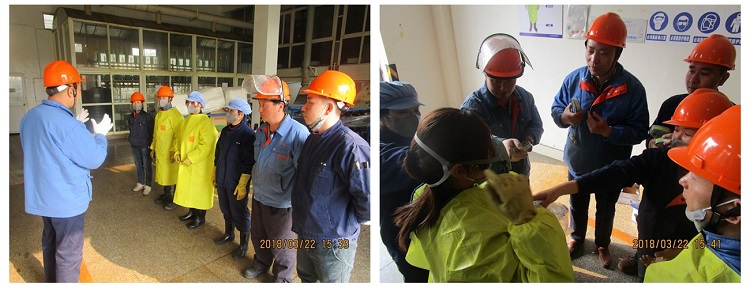 3月22日起,安保部對生產(chǎn)、倉儲、檢測等作業(yè)現(xiàn)場逐一開展應(yīng)急處置實操演練。