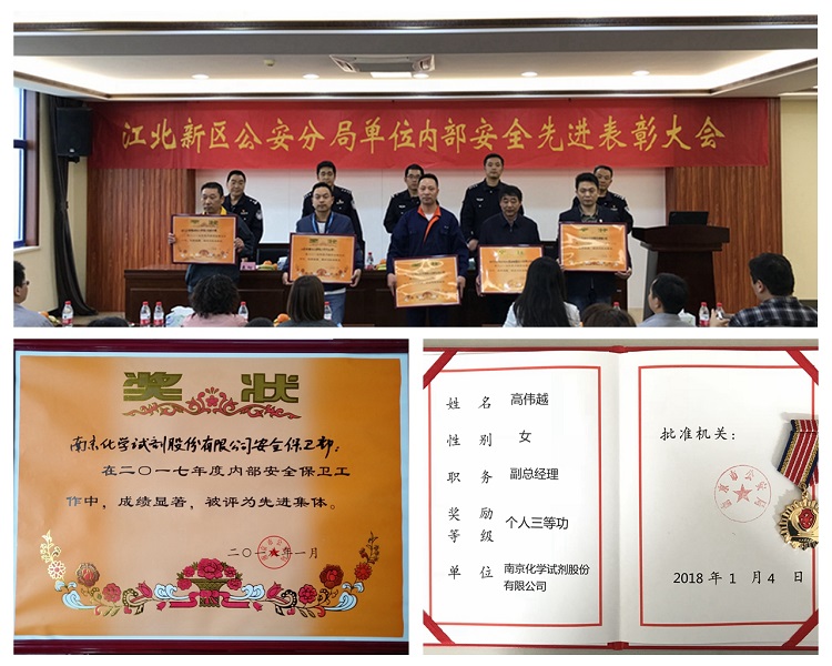4月12日,江北新區(qū)內(nèi)部安全先進(jìn)表彰會(huì)在南試公司召開(kāi),會(huì)議宣布了南京市公安局關(guān)于表彰化工園區(qū)27家“先進(jìn)集體”和22位“先進(jìn)個(gè)人”的決定,南京試劑安保部被評(píng)為南京市2017年度內(nèi)部安全工作“先進(jìn)集體”,生產(chǎn)安全副總經(jīng)理高偉越同志榮立“三等功”。