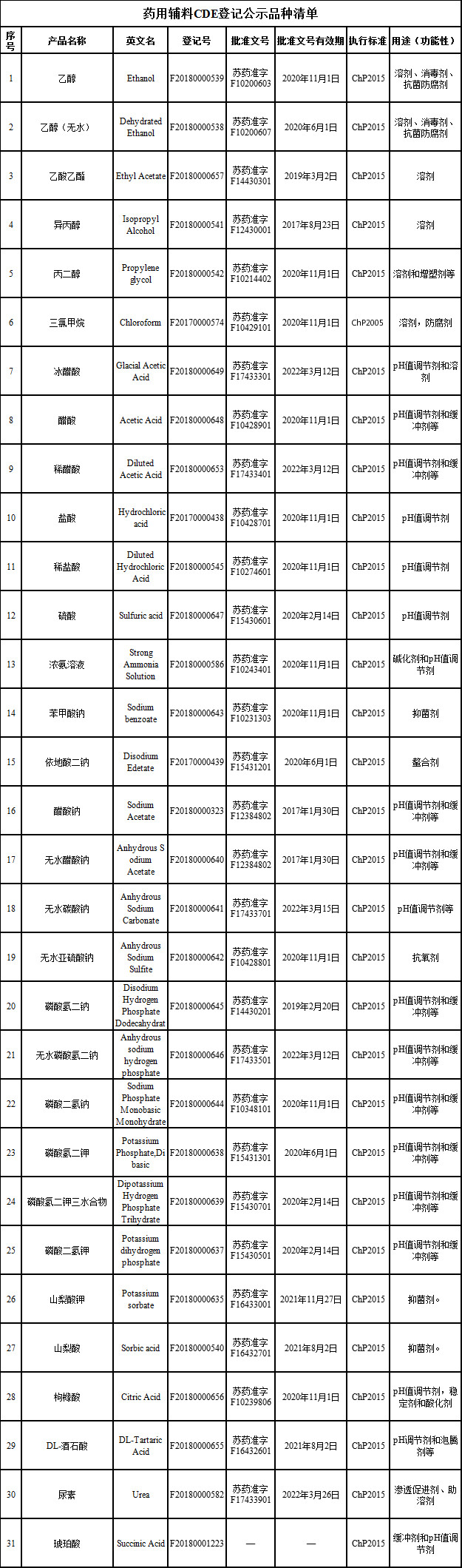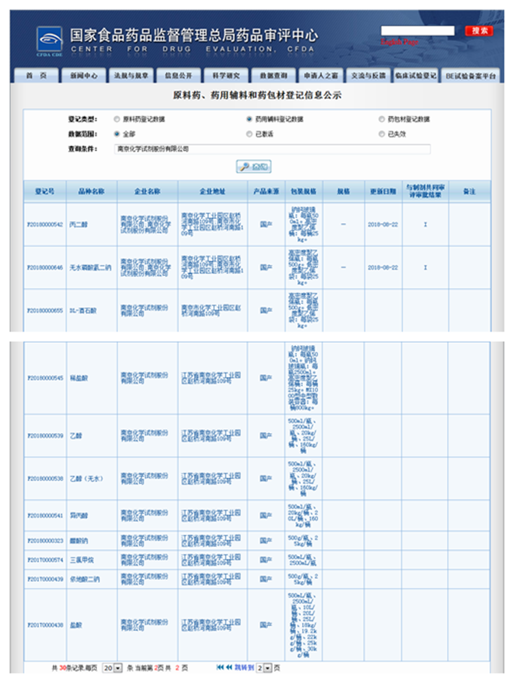 近日,南京試劑丙二醇和無水磷酸氫二鈉兩個(gè)藥用輔料品種登記信息在國(guó)家食品藥品監(jiān)督管理總局藥品審評(píng)中心網(wǎng)站(CDE平臺(tái))公示。至此,公司30個(gè)原有批件藥輔品種全部在該平臺(tái)完成備案公示。此外,琥珀酸等新增藥輔品種備案資料已遞交CDE平臺(tái),正在審核過程中。