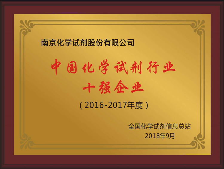 會(huì)上,2016~2017年度中國(guó)試劑行業(yè)“十強(qiáng)企業(yè)”頒發(fā)儀式隆重舉行。該榮譽(yù)評(píng)選始于2014年,由全國(guó)化學(xué)試劑信息站根據(jù)全國(guó)試劑行業(yè)企業(yè)銷售收入、品種數(shù)量、品牌影響力、市場(chǎng)占有率、服務(wù)能力、創(chuàng)新能力、可持續(xù)發(fā)展能力等綜合實(shí)力,每?jī)赡暝u(píng)選一次。我公司連續(xù)三次獲評(píng)該項(xiàng)榮譽(yù)。