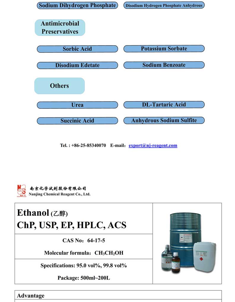 Dehydrated Ethanol | F20180000538 | 蘇藥準字F10200607 | ChP2015/USP40/EP9.0/HPLC/ACS | |