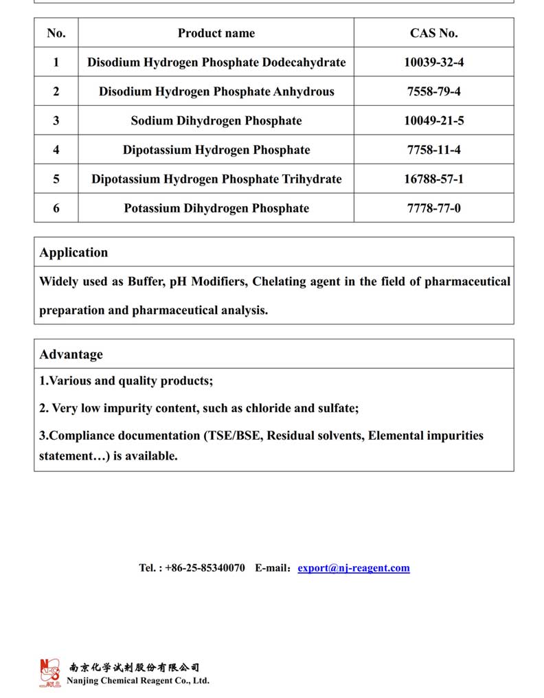 Dipotassium Hydrogen Phosphate Trihydrate | F20180000639 | 蘇藥準字F15430701 | ChP2015 | |