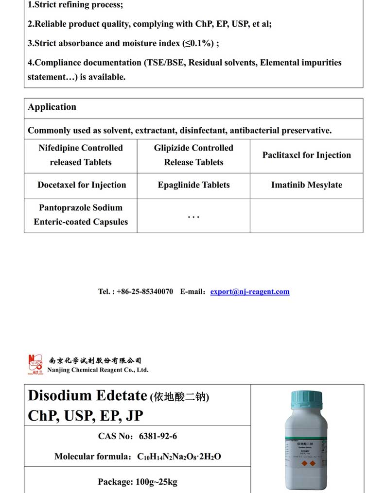 Disodium Edetate | F20170000439/F20190000076 | 蘇藥準字F15431201 | ChP2015/USP40/EP9.0/JP17 | |