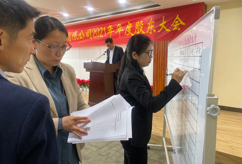 監(jiān)事會主席作了《2021年監(jiān)事會工作報告》,財務副總作《2021年度財務決算和2022年度財務預算的報告》,董事會秘書就《年度報告》及相關(guān)議項作了說明。