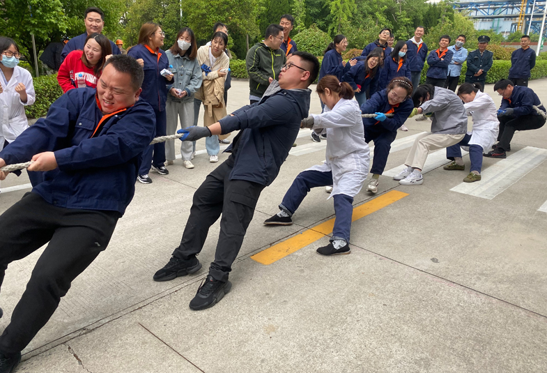 隨后,文體活動拉開帷幕。首先第一項是重頭戲——拔河比賽。各位參賽者排列整齊,斗志昂揚、摩拳擦掌、躍躍欲試,比賽采取三局兩勝的小組淘汰制。隨著裁判的一聲哨響,角逐開始,各支參賽隊伍卯足了勁,競爭異常激烈,啦啦隊則在旁大聲吶喊,加油助威,使出渾身解數(shù)。經(jīng)過幾輪角逐,最后由生產(chǎn)一分廠隊獲得冠軍,品質(zhì)部和拓展部聯(lián)合代表隊獲得亞軍,生產(chǎn)二分廠和藥輔部聯(lián)合代表隊獲得季軍。